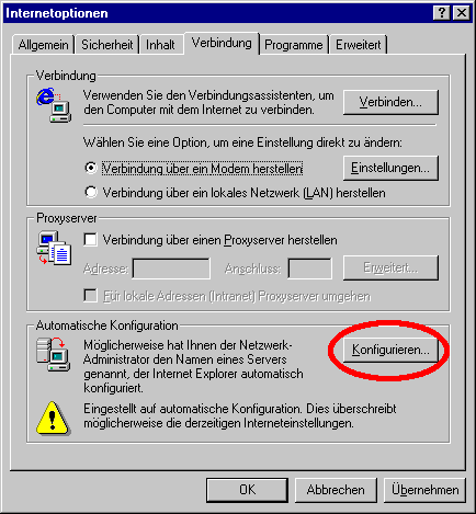 Konfiguration in Microsoft Explorer, Version 5.x